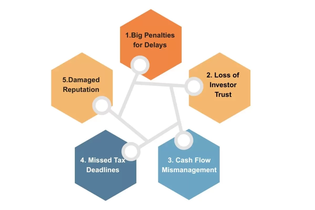 Late reporting often results in missing tax filing deadlines, which again brings penalties, interest, and compliance headaches.